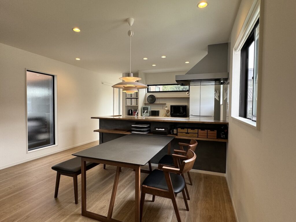 対面のキッチンは、奥様から人気の仕様。家事動線を徹底的に考えた設計で、買い物帰りにスムーズに荷物をしまえるのが嬉しいポイントです。耐水性の高い床材を使用しており、メンテナンスも簡単です。