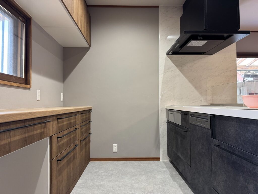 キッチン背面には造作収納も設置し、動線と収納力のバランスが取れた空間になりました。