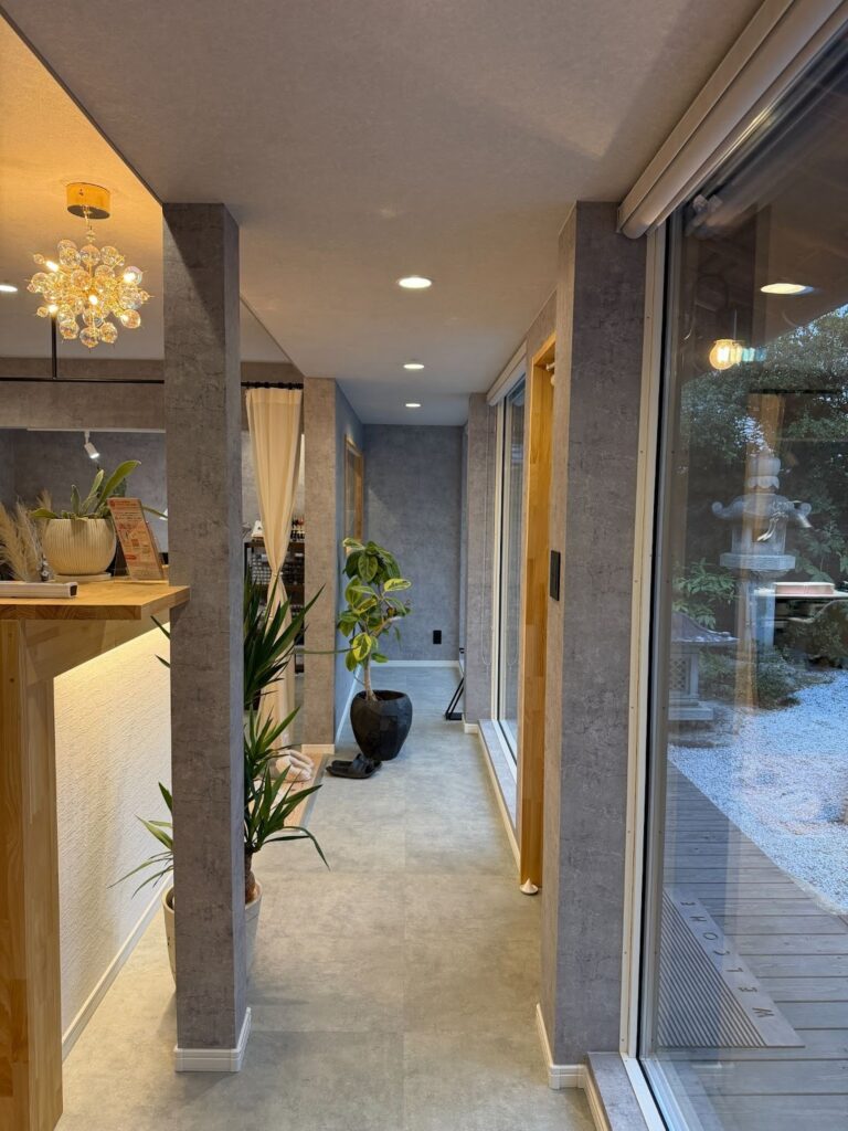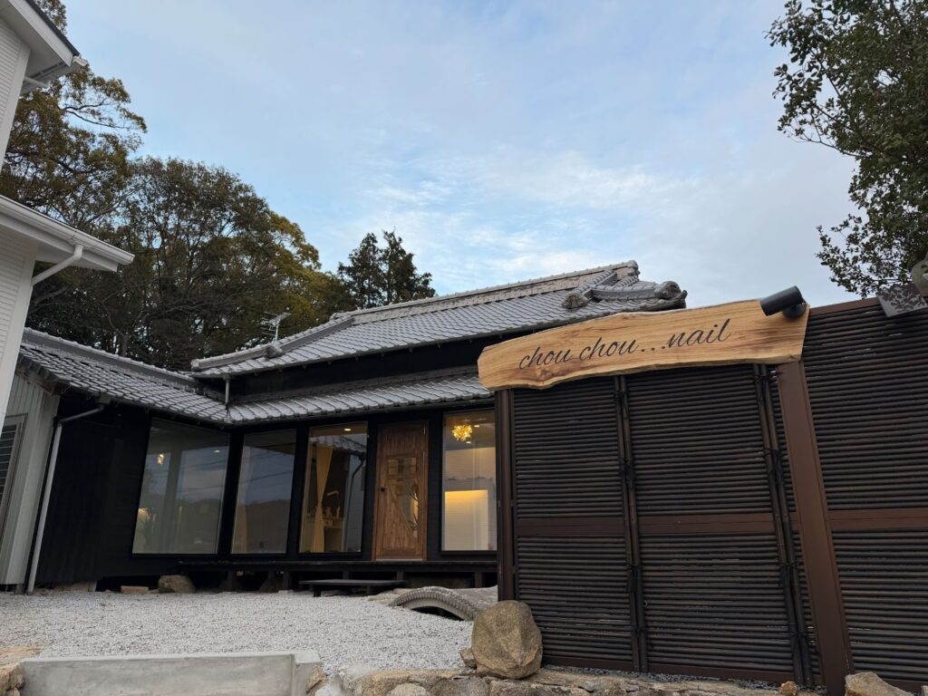 古民家の雰囲気から一転、落ち着きと洗練を感じるネイルサロン空間へと変化しました。