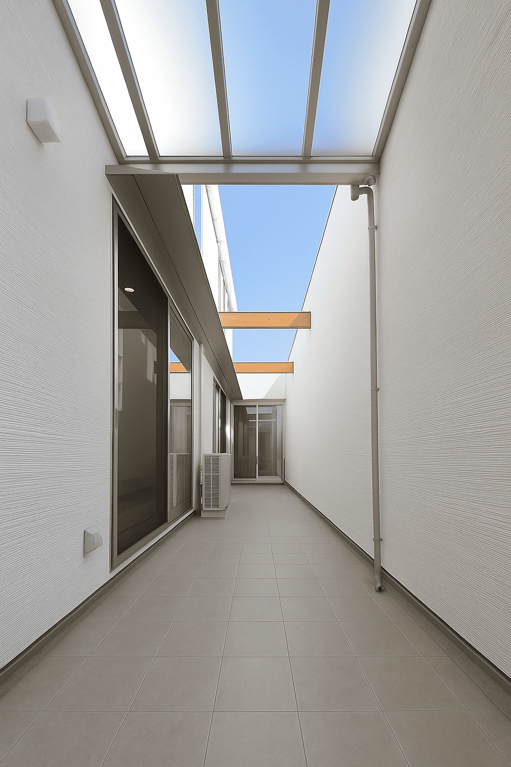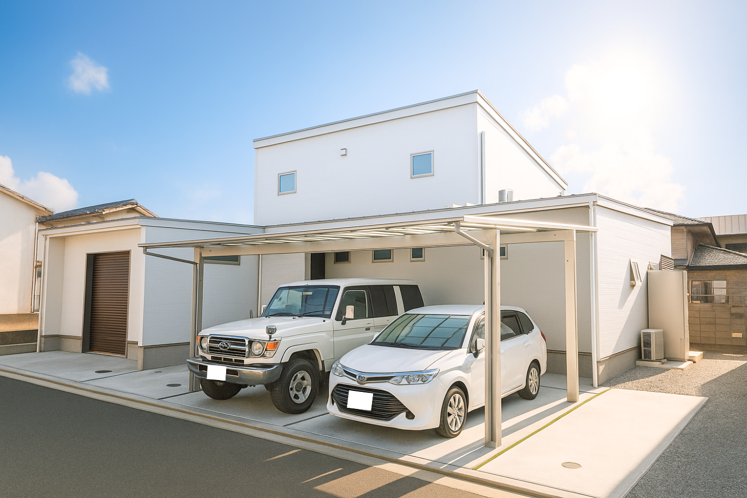 白を基調としたスクエア型のシンプルモダンな外観が、洗練された印象を与える住まいです。2台分のカーポートは雨の日も安心なうえ、車や自転車の出し入れがスムーズ。道路側に面したインナーガレージは、趣味のバイクやアウトドア用品の収納にも活躍します。無駄のないフォルムと水平ラインの美しさが、機能性とデザイン性を兼ね備えた現代的な暮らしを実現しています。